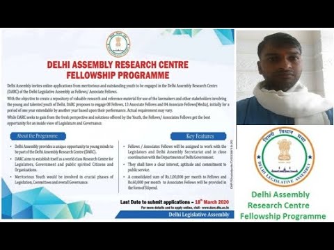 Delhi Assembly Research Centre Fellowship Programme-2020,LAST DATE 23 मार्च